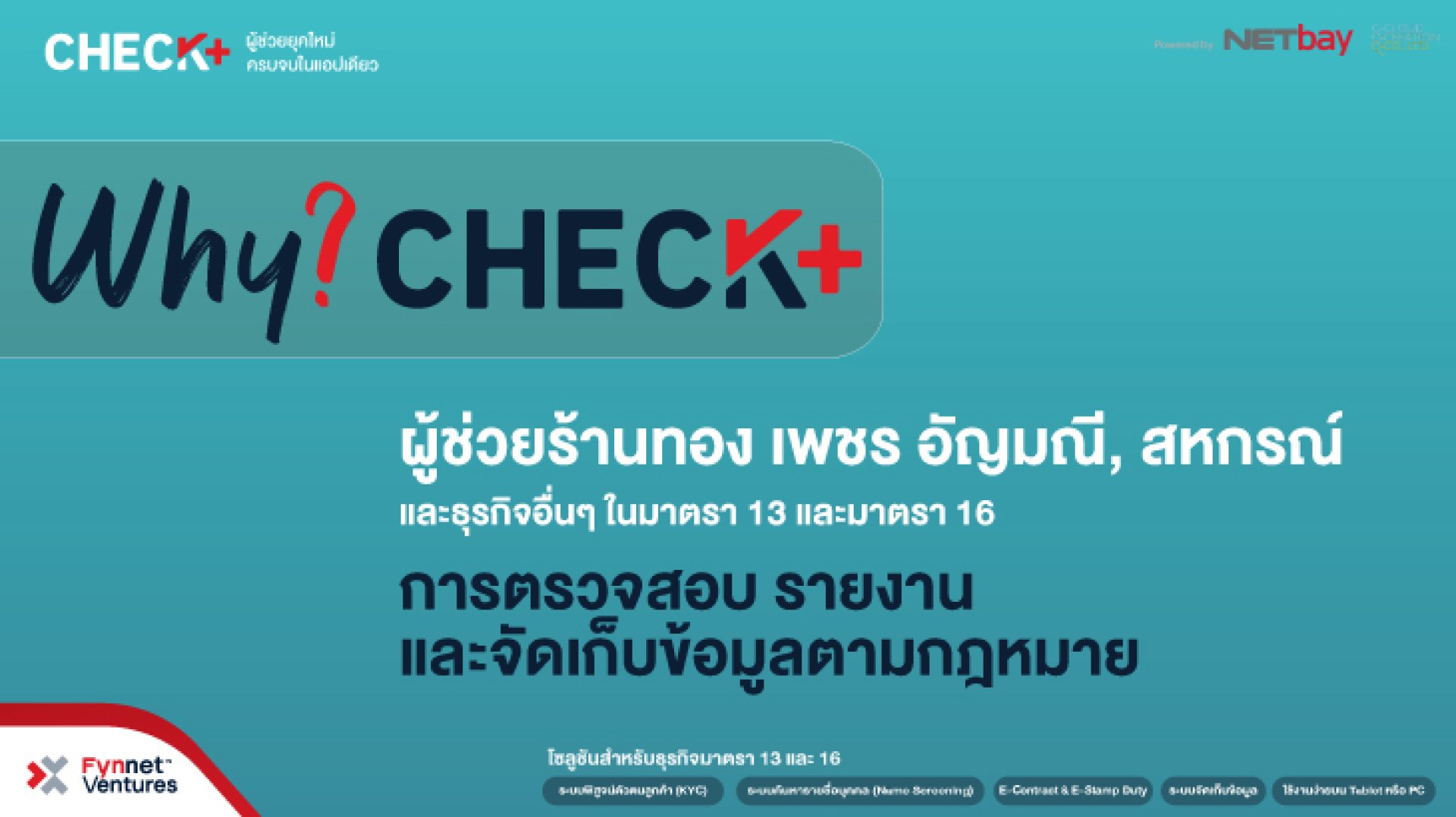 แต่ CHECK+ ยังช่วยให้การรายงานธุรกรรมของธุรกิจมาตรา 13 อย่างสหกรณ์ หรือธุรกิจมาตรา 16 อย่างร้านทอง เพชร อัญมณี ตามพรบ. ป้องกันและปราบปรามการฟอกเงิน พ.ศ.2542 สะดวกมากยิ่งขึ้น